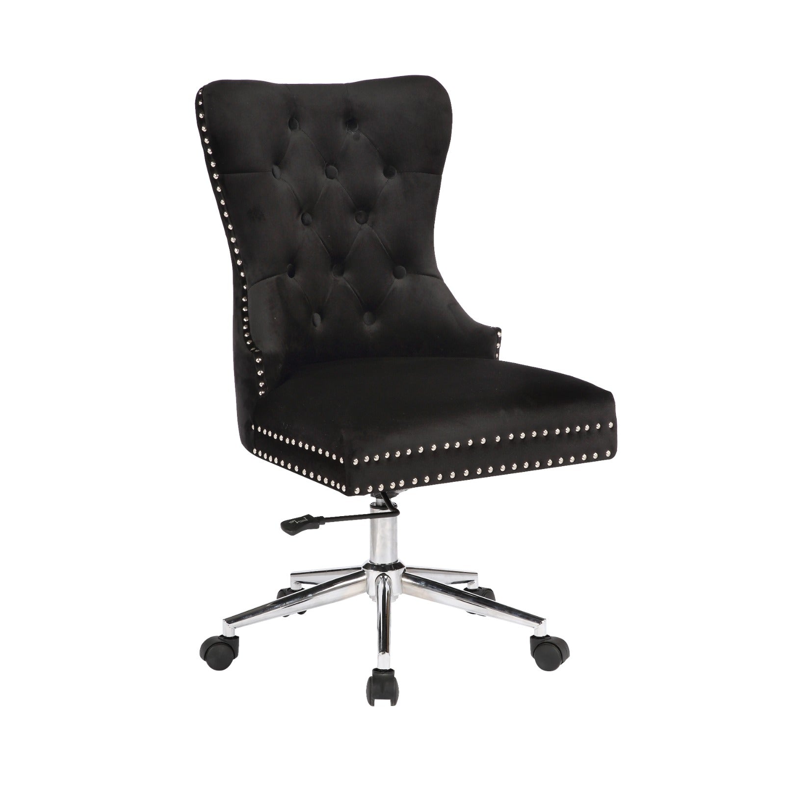 Modern tufted adjustable office chair made of wooden frame, high density foam and velvet upholstery.