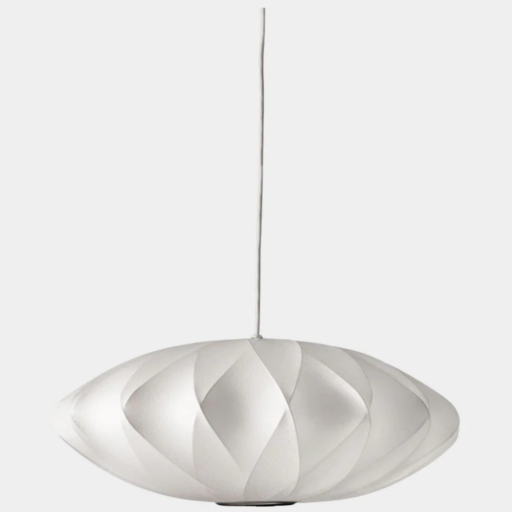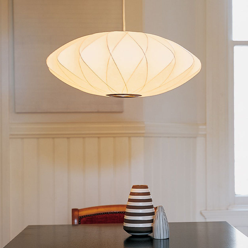 Elevate your space with this elegant pendant light, featuring a delicately crafted shade made of white silk fabric. Its soft texture and gentle glow create a warm, inviting ambiance, perfect for dining rooms, bedrooms, or entryways. The minimalist design adds a touch of sophistication, blending seamlessly with both modern and classic interiors.