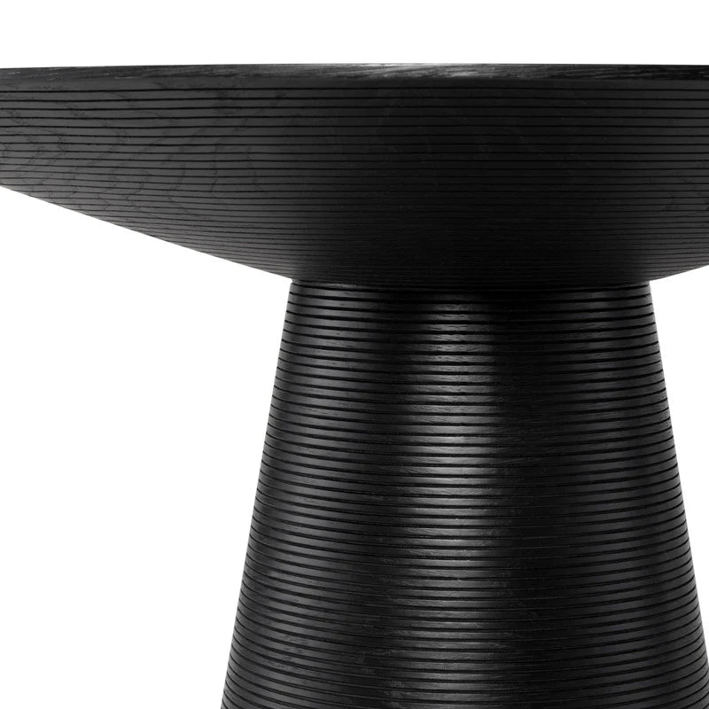The Dania Dining Table, a bold statement piece inspired by contemporary Japanese design. A distinctive ribbed base plinth projects an intriguing profile, the uniquely crafted rounded tabletop highlights the Dania's sculptural appeal.