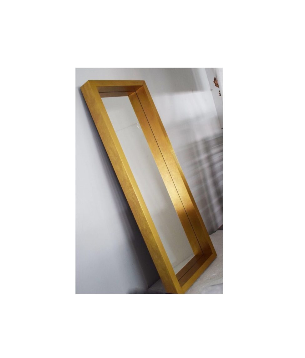 Floor mirror with solid heavy MDF frame, distressed gold finish.