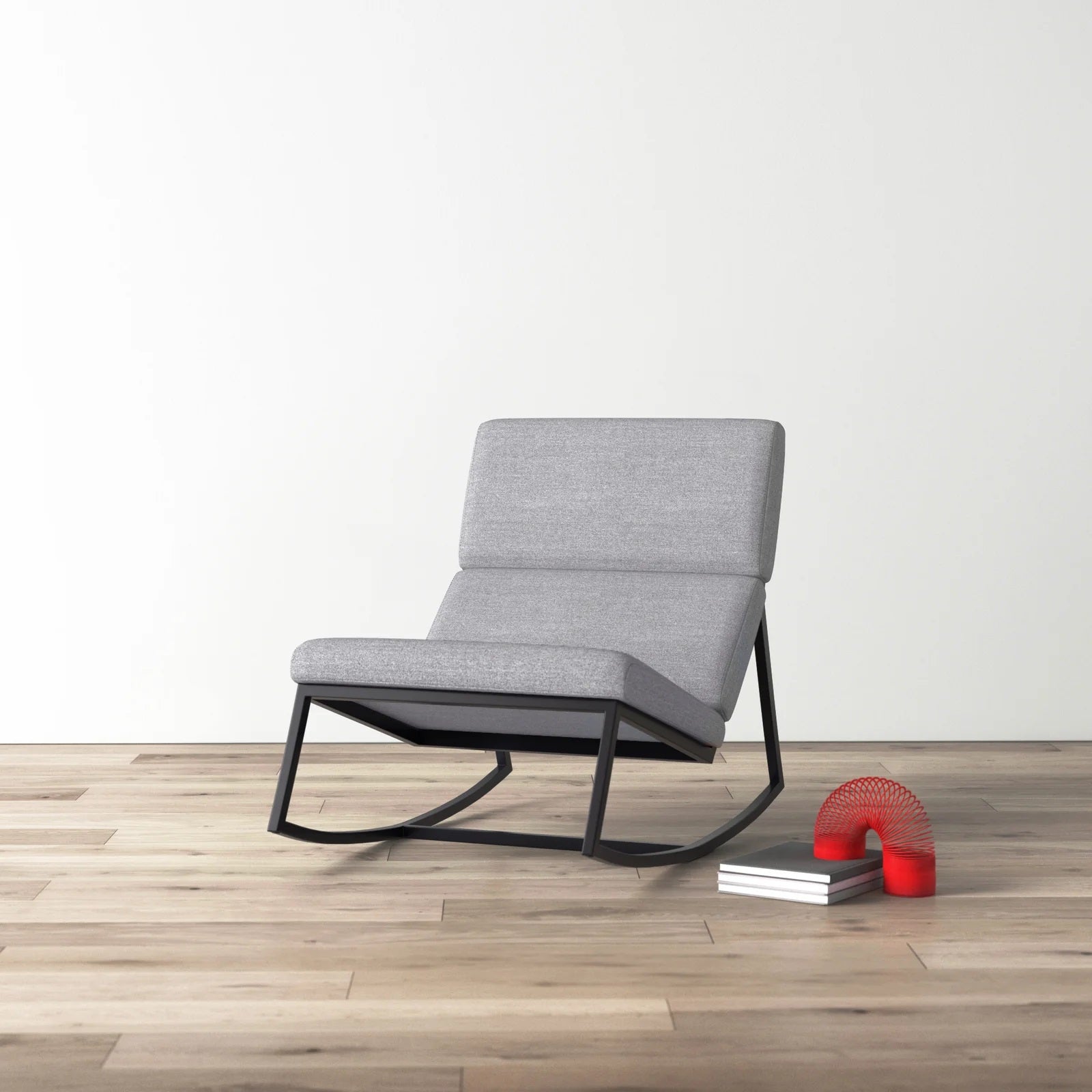 Dynamic lounge rocker chair, black metal base and fabric upholstery in gray