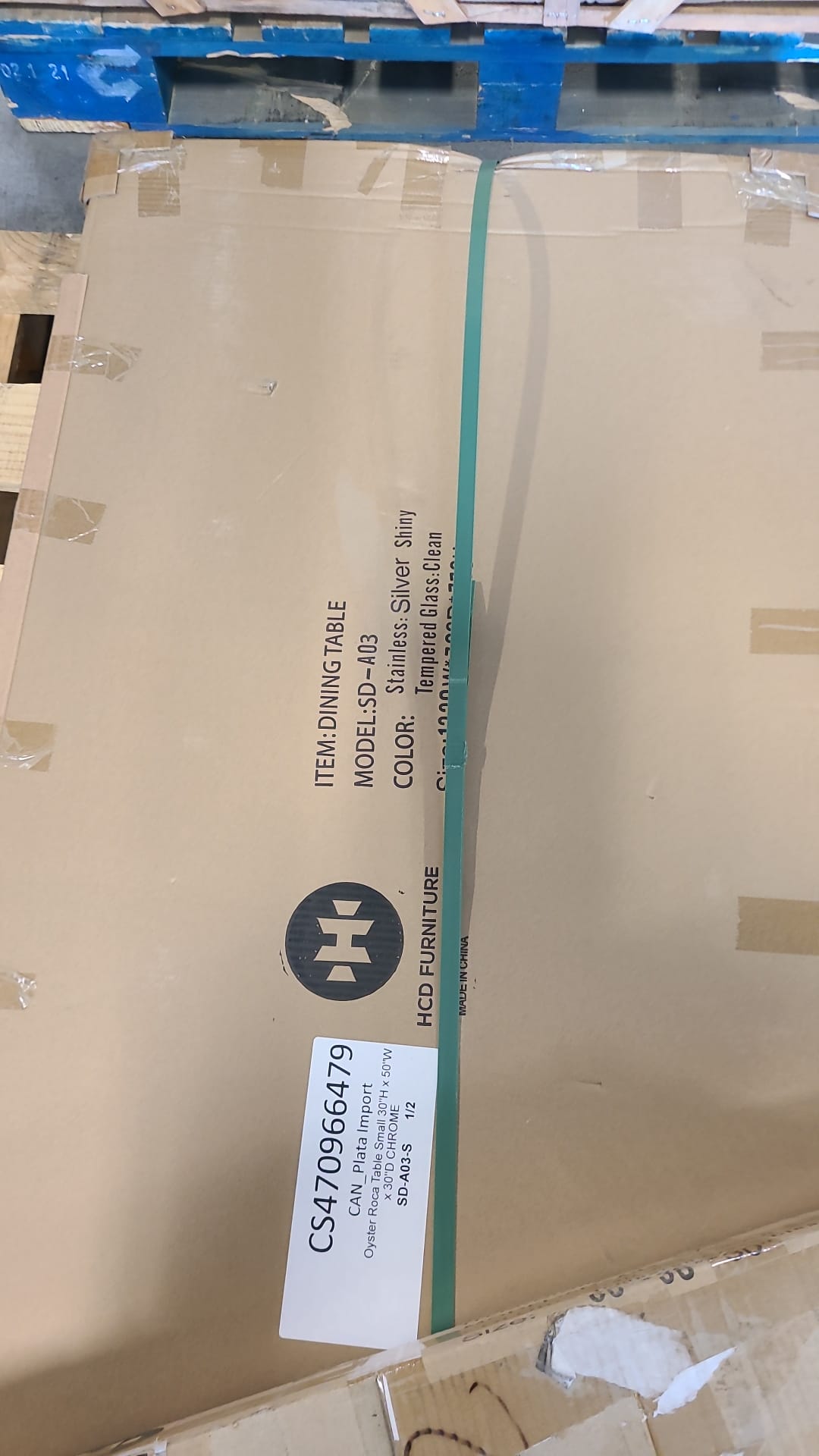 Rectangle dining table with tempered clear glass and polished stainless steel base.