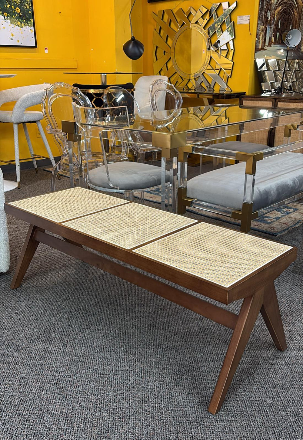 Crafted from high-quality solid wood, this bench features a beautifully handwoven cane seat that adds a touch of natural elegance and timeless charm. Available in either a light natural finish or a rich walnut tone, it complements a variety of interior styles—from boho and rustic to mid-century and modern. The sturdy wooden frame offers durability and stability, while the airy cane seating brings comfort and visual warmth to any space. Perfect for entryways, bedrooms, or dining areas.