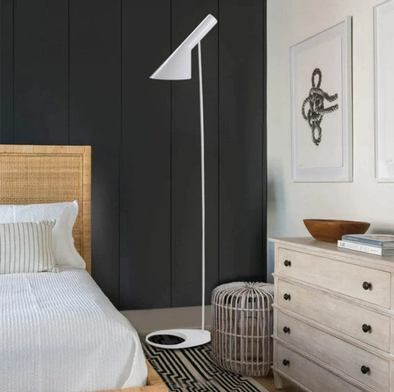 Introduce modern style and functionality to any space with the AJ Floor Lamp. Its black or white powder coat finish adds a sleek touch while the aluminum base and iron shade, featuring a tilt function, provide durability and versatility.