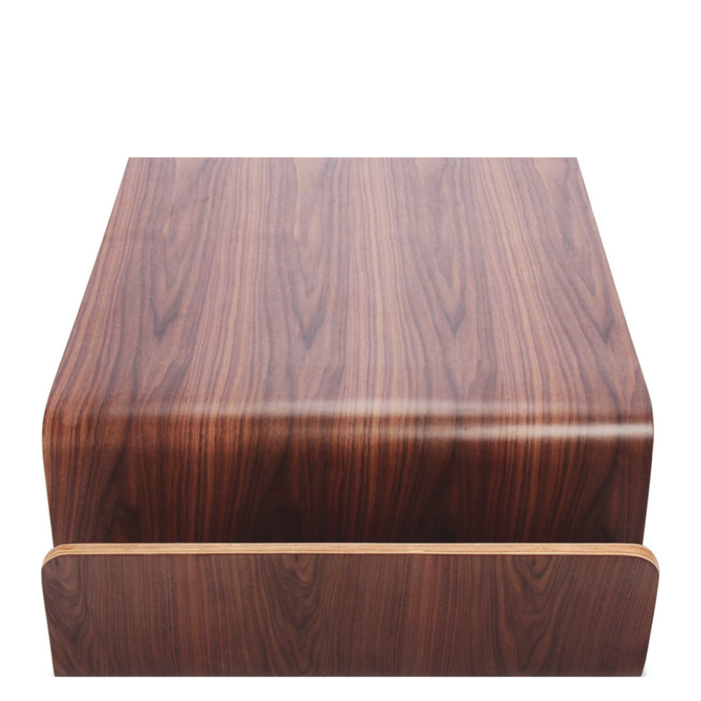 This stylish coffee table features a sleek, modern design crafted from curved plywood, available in elegant oak or rich walnut finishes. Its smooth, flowing lines and natural wood grain bring warmth and sophistication to any living space.