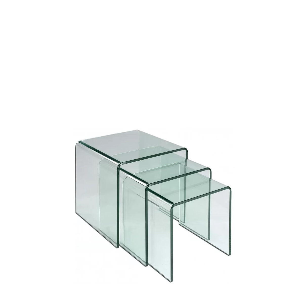 Nesting table with 12mm Un-tempered bent glass.